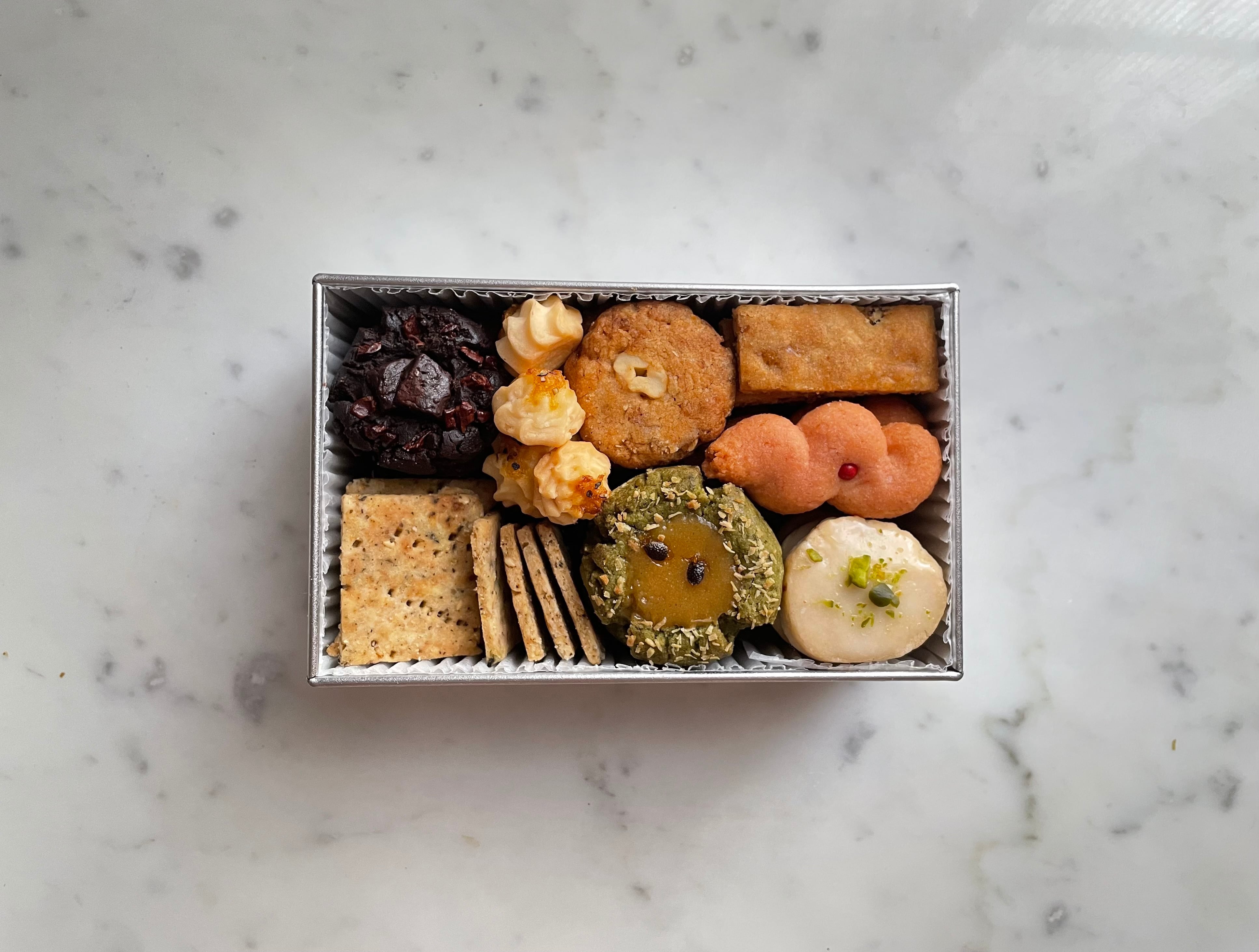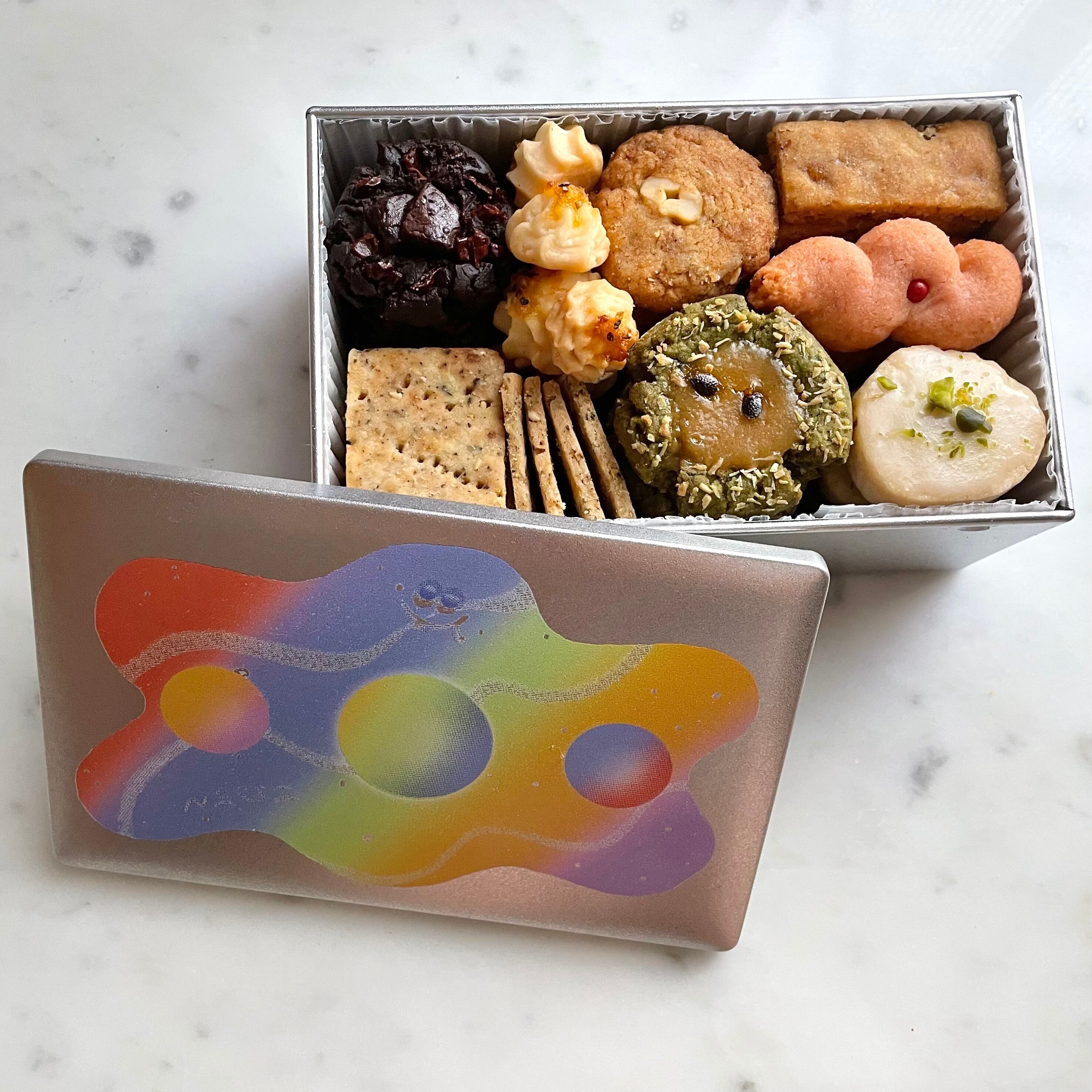 パッションフルーツやカカオ、バナナに赤紫蘇、ビーツなどなどフルーツや野菜をふんだんに使ったクッキー缶です。